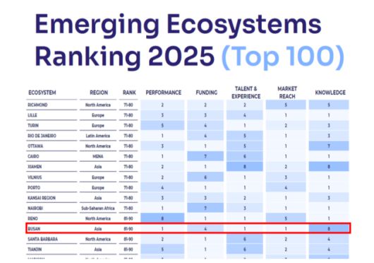 부산시가 글로벌 창업생태계 평가기관 스타트업 지놈(Startup Genome)이 발표한 '2025 글로벌 신흥 창업도시 순위'에서 세계 80위권에 진입하며 창업 도시로서의 입지를 다시금 확인했다.