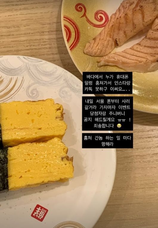 최준희는 “바다에서 누가 휴대폰 덜렁 훔쳐가서 인스타랑 카톡 못하고 있어요. 내일 서울 폰부터 사러 갈거라 가자마자 이벤트 당첨자 공지 해드릴게요. 죄송합니다. 훔쳐 간 X 하는 일마다 망해라”라는 글을 남겼다. 여행 중 휴대전화를 분실해 불편을 겪고 있는 상황이었다.