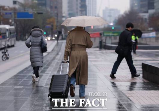 기상청에 따르면 이날 새벽(00~06시)부터 오전(06~12시) 사이 전국 대부분 지역에서 비가 내리고 일부 중부지방과 경상권, 제주도는 오후(12~18시)까지 곳에 따라 비가 이어지겠다.