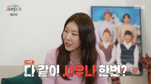 한혜진이 태계일주 멤버들에게 사우나를 같이 가자고 제안했다. /사진=MBC '태어난 김에 세계일주4' 캡처 |