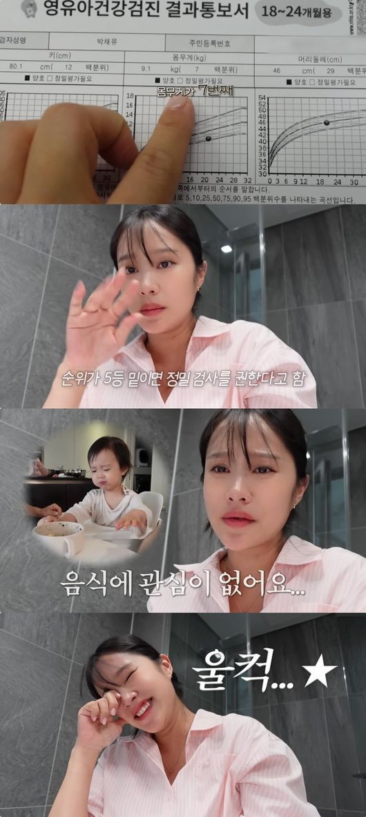 이어 “영유아 검진 때문에 간 거다. 근데 이 영유아검진 결과가 너무 너무 충격적이라서 마음이 너무 안 좋다. 눈물이 난다. 눈물이 나”라며, “원래 그러잖아요. 애가 아프면 다 내 탓 같고, 뭔가 부족하면 내가 뭘 잘못한 거 같고”라고 덧붙이며 눈물을 보였다.
