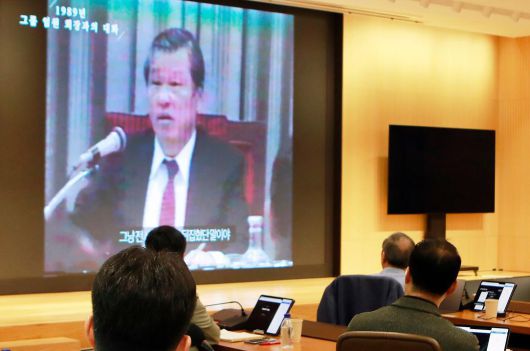 SK그룹 주요 경영진이 13∼14일 경기 이천시 SKMS연구소에서 열린 ‘2025 SK 경영전략회의’에 참석해 고 최종현 SK그룹 선대회장의 경영철학이 담긴 영상을 보고 있다. SK그룹 제공 |
