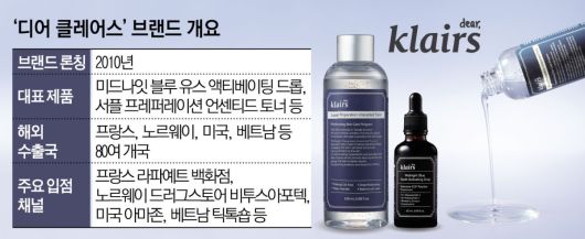 특히 ‘화장품 강국’ 프랑스의 라파예트백화점에 공식 입점하며 그 인기를 입증했다. 클레어스는 현재 누적 판매 100만 개가 넘는 8종의 글로벌 밀리언 셀러를 보유 중이다. 대표 제품은 자극을 주지 않으면서 피부를 진정시키는 유형으로 ‘미드나잇 블루 유스 액티베이팅 드롭’(블루드롭)과 ‘서플 프레퍼레이션 언센티드 토너’를 꼽을 수 있다.
