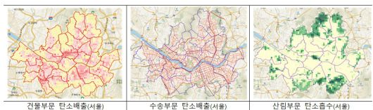 전국 약 720만 동(棟)의 건물별 에너지사용량과 도로구간별 교통량, 임상도 등을 기반으로 탄소배출과 흡수정보를 1㎞·500m·100m 격자 단위로 매년 경신하고 있다.