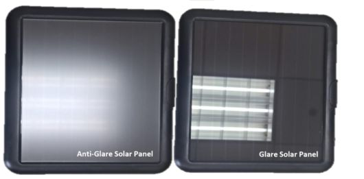 빛 반사 방지 가공한 태양광 패널(왼쪽)과 가공전 패널 비교. 〈사진 블루디바이스 제공〉 |
