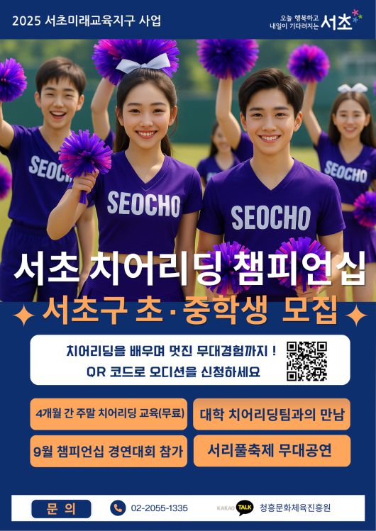 먼저, 올해 처음 시작하는 ‘서초 치어리딩 챔피언십’은 트렌디한 치어리딩 활동에 인성교육 요소를 접목해 협동과 배려, 팀워크를 자연스럽게 습득하도록 구성된 프로그램이다. 참가 학생들은 4개월간 주말마다 전문 치어리딩 교육을 받는데, 그 과정에서 대학 치어리딩팀과의 만남이 예정돼 있어 진로탐색의 기회도 될 전망이다. 교육을 마친 후 9월에는 챔피언십 경연대회가 열리고, 우승팀에는 서초구 대표 음악축제인 ‘서리풀페스티벌’ 본무대 공연이라는 특별한 기회도 제공된다. 해당 프로그램은 초‧중등생을 대상으로 오는 19일까지 참여자를 모집한다.