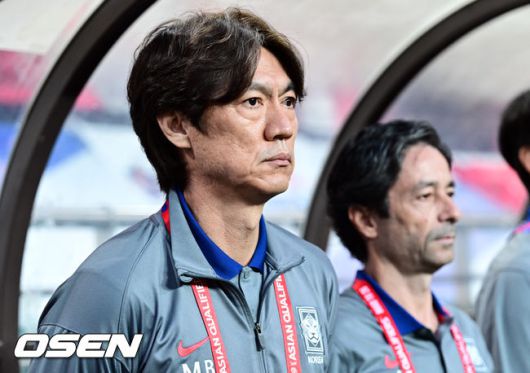 [OSEN=상암, 조은정 기자]서울월드컵경기장이 화려한 골 폭죽으로 물들었다. 홍명보호가 월드컵 예선 마지막 경기에서 팬들에게 시원한 대승을 선물했다.홍명보 감독이 이끄는 대한민국 축구대표팀은 10일 오후 8시 서울월드컵경기장에서 열린 2026 국제축구연맹(FIFA) 북중미 월드컵 아시아 3차 예선 조별리그 B조 10차전 최종전에서 쿠웨이트를 4-0으로 격파했다.홍명보 감독이 그라운드를 바로보고 있다. 2025.06.10 /cej@osen.co.kr |