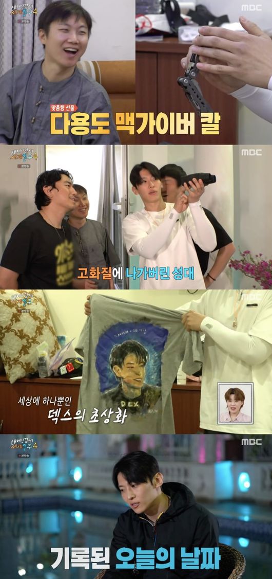 훈훈한 분위기 속 기안84도 덱스를 위한 선물을 꺼냈다. 바로 히말라야에서 구입한 티셔츠에 직접 덱스 초상화을 그려 넣은 것. 약 2시간에 걸쳐 완성한 정성 가득 그림 티셔츠였다.