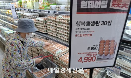 이 밖에도 러시아산 활대게는 100g당 7990원에서 3995원으로 반값에, 행복생생란 계란(30개)은 7990원에서 4990원으로 37.5% 할인 판매한다. ‘오늘좋은’ 우유 역시 900㎖ 2개들이를 기존 3790원에서 2990원으로 21.1% 할인한다.