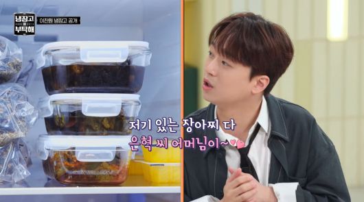 냉장고에는 고추 장아찌도 발견됐다. 이찬원은 "슈퍼주니어 은혁 씨 어머님이 나를 예뻐해 주신다. 저기 있는 장아찌 다 은혁 씨 어머님이 해주신 것"이라고 말했다.