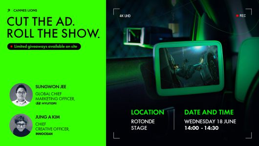 먼저 이노션은 현대자동차와 함께 ‘칸 라이언즈’에서 혁신적인 마케팅 방법을 논하는 단독 세미나를 개최한다. ‘광고는 덜고, 진짜 이야기를 시작하라(Cut the ad. Roll the show)’라는 주제로 진행되는 세미나는 광고에 대한 피로감과 콘텐츠 과잉 속에서 브랜드가 집중해야 할 핵심 요소를 다각도로 조명해 콘텐츠 전략의 새로운 방향성을 제시할 예정이다.