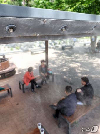 서울 지역 낮 최고기온이 31도까지 올라 초여름 더위가 찾아온 12일 서울 영등포구 여의도공원에서 시민들이 쿨링포그 아래에 앉아 무더위를 쫓고 있다. 2025.6.12/뉴스1 ⓒ News1 민경석 기자 |