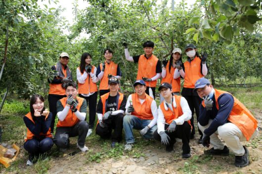 이날 한화 임직원 40여 명은 적과(열매솎기), 과원정비 및 농경지 정리 작업을 했다.