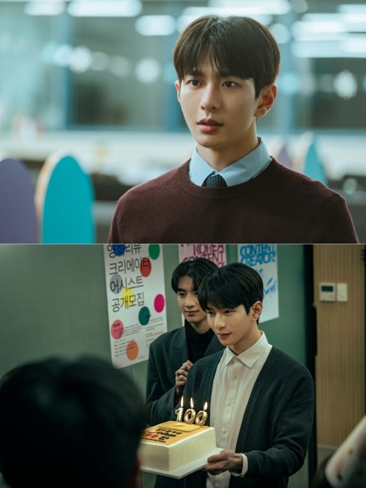 또 다른 스틸에서는 우진 특유의 다정한 면모를 엿볼 수 있다. 케이크를 들고 동료들과 함께 파티를 열어주는 다정한 성향을 가진 캐릭터 특유의 매력이 드러나는 대목이다. 이는 다경이 짝사랑할 수밖에 만드는 우진으로서 완벽한 몰입을 자아낸다.