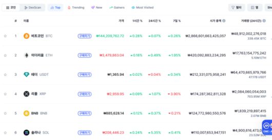 16일 오전 8시 50분 기준, 글로벌 가상자산 시황중계 사이트 코인마켓캡에 따르면 비트코인은 24시간 전 대비 0.07% 상승한 1억4421만원을 기록 중이다. 비트코인은 지난 달 23일 사상 최고가를 기록했지만 이달 들어 10만달러 초중반대에서 등락을 반복 중이다.