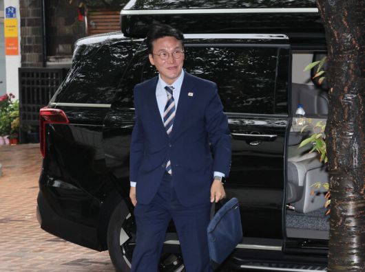 김민석 국무총리 후보자가 16일 서울 종로구 통의동 금융감독연수원에 마련된 청문회 준비단 사무실로 출근하고 있다. 연합뉴스 |