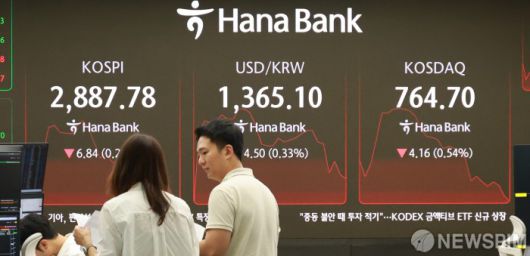 [서울=뉴스핌] 양윤모 기자 = 계속되는 이스라엘과 이란의 분쟁속 16일 오전 코스피가 전장 종가보다 6.84 포인트(0.22%) 하락하며 2,887.78로, 코스닥은 4.16 포인트(0.54%) 하락한 764.70으로 시작한 가운데, 서울 중구 하나은행 딜링룸에서 직원들이 업무를 보고 있다. 서울외환시장에서 원·달러 환율은 전장 대비 4.50원 하락한 1,365.10원에 거래를 시작했다. 2025.06.16 yym58@newspim.com
