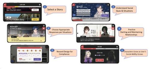이 프로그램은 학교에서 주로 접하는 다양한 상황을 제시하고, 사용자가 게임을 하듯 임무를 수행하며 문제를 해결하도록 설계됐다. 예컨대 친구와의 첫 만남을 가정한 상황에서 사용자가 적절한 반응을 선택하게 해 대화를 이어가는 식이다.