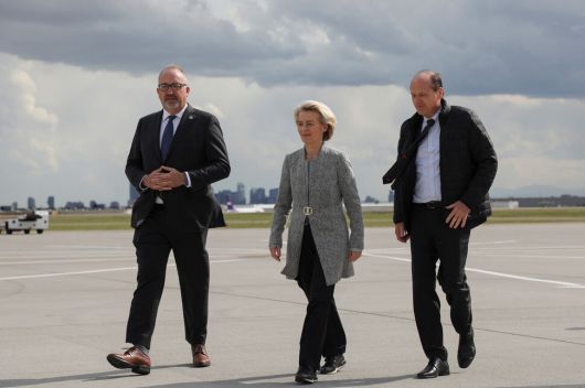 15일 우르줄라 폰 데어 라이엔 유럽연합 집행위원장이 주요7개국 정상회의 참석차 캐나다 캘거리 국제 공항에 도착했다. 로이터 연합뉴스 |
