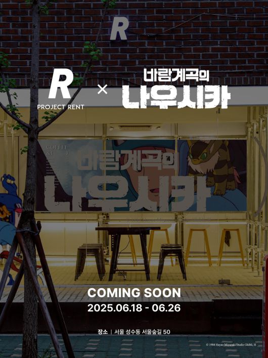 먼저 18~26일, 단 7일 간 운영(월, 화 휴무)되는 ‘프로젝트 렌트’는 성수동 프로젝트 렌트 2호점에서 운영된다. 이번 팝업존은 ‘바람계곡의 나우시카’ 속 세계관과 스튜디오 지브리의 스타일을 오롯이 담아낸 작화. 다양한 이벤트가 준비되어 있다.