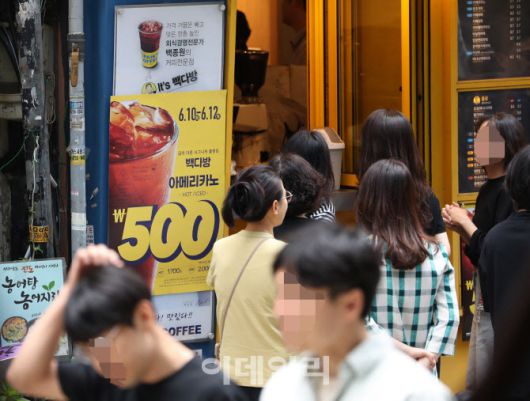 지난 10일 서울시내 한 빽다방 매장에서 줄을 선 사람들. (사진=이데일리 김태형 기자) |