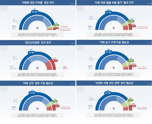 한편 우리나라가 초고령사회에 진입함에 따라 '중증치매로 인한 사회적 의료비 및 돌봄 비용이 증가하고 있다'는 데에 응답자의 81.2%가 동의하는 것으로 집계됐다. 연령별 추세는 마찬가지로 4060세대에서 더 높았다.