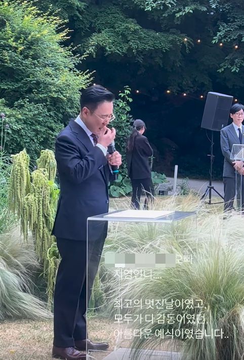 이어 정우영에게 "사랑스러운 우리 딸을 잘 부탁한다. 누구보다 소중하게 따뜻하게 함께해달라. 결혼은 둘이 힘께 만들어가는 팀플레이"라고 했다.