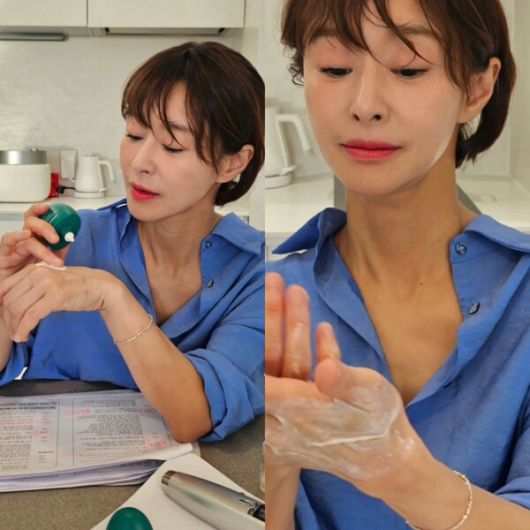 공개된 사진 속 예지원은 대본을 앞에 두고 차분하게 선스크린 팩을 바르는 모습이다. 평소에도 동안 외모로 부러움을 샀던 예지원은 이번 피드를 통해 피부 관리에 있어 자외선 차단의 중요성을 강조했다.