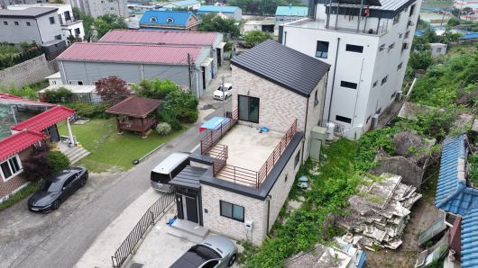 주택 뒤쪽으로는 대규모 블록형 전원주택 단지가 형성돼 있다. 해당 주택은 이로부터 나홀로 도로변에 동떨어져 있지만, 현장에서 확인한 바로는 주택 외에 작은 사무실과 창고뿐이 없어 소음 및 안전·보안에 대한 우려를 불식시켰다. 도로변에 있는 만큼 넓은 주차 공간이 확보되고, 진입이 쉬운 점은 장점이다. 서울 강남에서 출발해 용인IC에서 42번 국도로 빠져나와 해당 주택이 있는 곳까지 진입로가 짧고 편리해, 교통 상황에 따라 자차로 40분대에 도착이 가능하다.