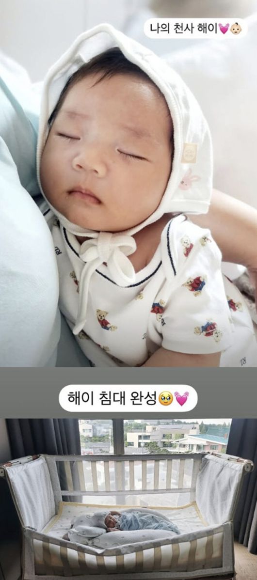 또한 손담비는 "해이 침대 완성"이라며 아기 방 사진도 공개했다. 커다랗고 아늑한 디자인의 아기 침대에 곤히 잠든 해이 양의 모습이 시선을 모은다.