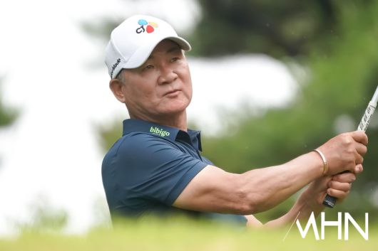 (MHN 진천, 박태성 기자) 16일 충북 진천군에 위치한 천룡 컨트리클럽(파72ㅣ6,068미터)에서 한국미드아마추어골프연맹 정규투어 '2025 벤제프 클럽챔피언십' 예선전 경기가 열렸다. 정환(CJ-양주CC)이 5번홀 경기를 펼치고 있다.
