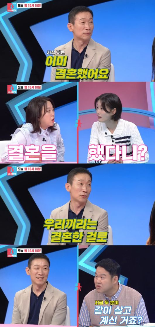 이어 "기사에도 나오고, 언제 결혼식 하냐고들 물어보는데, 사실 저는 이미 결혼했다"고 깜짝 발표했다. 이어 "우리끼리는 결혼한 걸로 했다"며 현재 아내와 동거 중이라고 밝혔다.