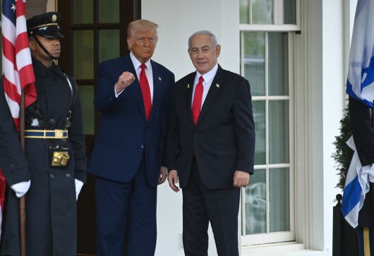 도널드 트럼프 미국 대통령(왼쪽)이 지난 4월 워싱턴 DC에서 정상회담을 위해 백악관에 도착한 베냐민 네타냐후 이스라엘 총리를 맞이하고 있다. [게티이미지] |