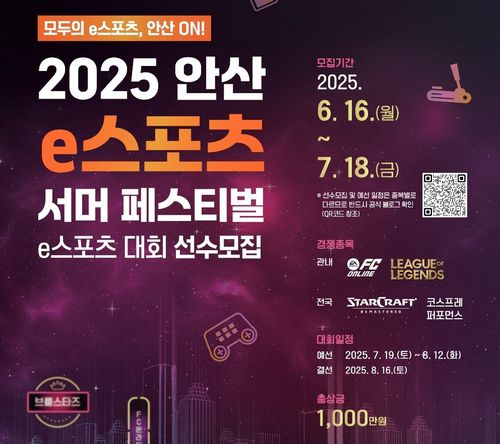 (안산=연합뉴스) 김인유 기자 = 경기 안산시는 '2025 안산 e스포츠 서머 페스티벌' 예선 참가자를 다음 달 18일까지 모집한다고 16일 밝혔다.