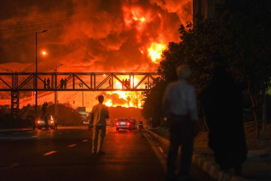 15일(현지시각) 테헤란의 한 정유소가 이스라엘 공습을 받은 뒤 불타고 있다. 테헤란/UPI 연합뉴스 |