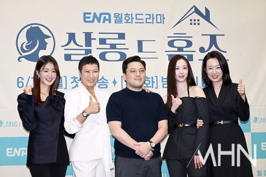 (MHN 이지숙 기자) 배우 이시영, 정영주, 민진기 감독, 김다솜, 남기애가 16일 오후 서울 마포구 상암동 스탠포드호텔에서 열린 ENA 월화드라마 '살롱 드 홈즈' 제작발표회에 참석했다.