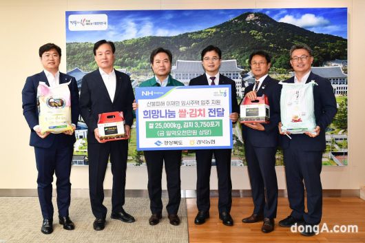 경북농협은 경북도의 이재민 긴급 주거지원 계획에 발맞춰 임시주택 입주완료 예정인 2500세대 대상으로 쌀 10kg와 포기김치 2.5kg씩을 공급한다는 방침이다. 총 지원규모는 쌀 2만5000kg, 김치 3750포기다. 금액 기준으로는 1억5000만원 상당이다.