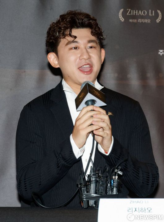 [서울=뉴스핌] 류기찬 인턴기자 = 바리톤 지하오 리가 16일 오후 서울 중구 더플라자호텔에서 열린 2025 조수미 콘서트 '더 매직, 2025 조수미와 위너들' 기자간담회에서 인사말을 하고 있다. 2025.06.16 ryuchan0925@newspim.com