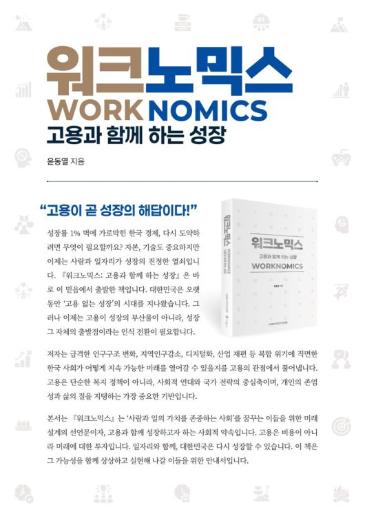 건국대 경영학과 교수이자 한국생산성학회 회장을 맡고 있는 윤동열 교수는 <워크노믹스>를 통해 '고용 없는 성장'이 아닌, 고용이 중심이 되는 새로운 성장 패러다임을 제시했습니다.