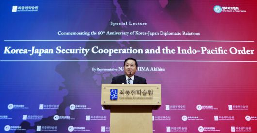 나가시마 일본 총리 보좌관이 16일 오후 최종현학술원에서 동북아 정세와 한일관계에 대해 연설하고 있다. 최종현학술원 제공 |