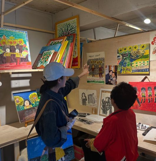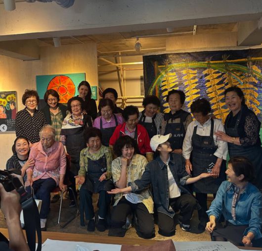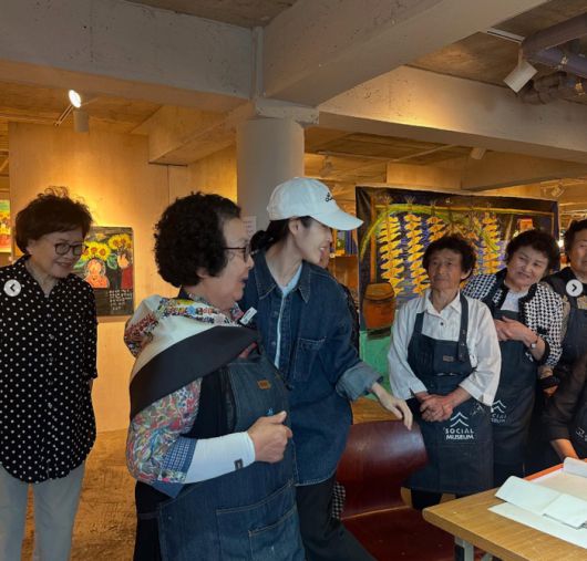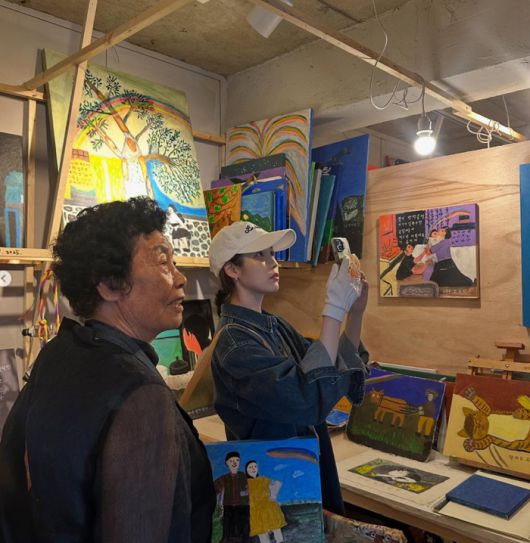 아이유가 방문한 전시 ‘폭싹속았수다, 똘도 어멍도 할망도’는 그림선생 최소연, 초록할망 홍태옥, 고목낭할망 김인자, 소막할망 강희선, 무지개할망 고순자, 신나는할망 오가자, 우라차차할망 조수용, 불할망 허계생, 우영팟할망 김옥순, 무화과할망 박인수 10인전으로 지난 5월 2일부터 제주 조천읍 선흘그림작업장에서 열리고 있다. 이 전시는 드라마 ‘폭싹 속았수다’를 주제로 선흘리 그림 할망 작가들이 그린 신작들을 선보이는 자리로 오는 6월 29일까지 진행된다.