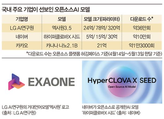 이처럼 해외에서는AI 대표 기업으로 꼽히는 곳들이 오픈소스 생태계를 이끌어왔지만, 그동안 한국은 오픈소스 AI 생태계가 빈약하다는 평가가 뒤따랐다. 국내에서는 LG AI연구원이 개발하는 모델인 ‘엑사원’ 정도만이 주요 오픈소스 사례로 거론됐다.