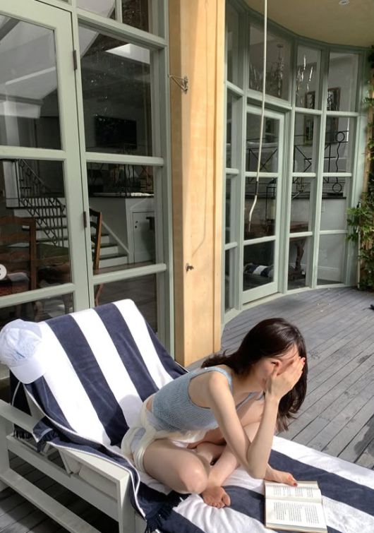사진에는 야외 테라스에서 머리를 정리하거나, 덱에 기대어 먼 곳을 응시하는 모습, 그리고 수영장 옆에서 선글라스를 들고 있는 모습 등이 담겨 보는 이들에게 청량감을 선사했다. 한편, 다른 사진에서는 스트라이프 비치 의자에 앉아 책을 읽는 듯한 모습으로 차분하면서도 지적인 분위기를 풍겼다.