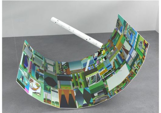 비주얼 모형: 전현선, Into the Woods to Lose Our Way, 2025 Assembled watercolors on canvas, 30 parts, 400x600x700cm (canvas structure), 350 x ø 35 cm (column) *재판매 및 DB 금지 |