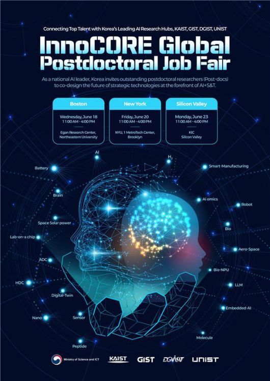 [대전=뉴시스] KAIST를 비롯한 4대 과학기술원이 AI와 과학기술 분야 연구혁신을 주도할 이노코어(InnoCORE) 연구단 본격 출범하고 우수 인재 유치에 나섰다. 사진은 채용 해외설명회 안내물.(사진=KAIST 제공) *재판매 및 DB 금지 |