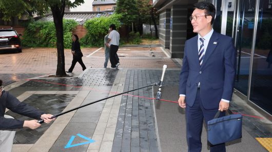 ▲ 김민석 국무총리 후보자가 16일 서울 종로구 통의동 금융감독연수원에 마련된 청문회 준비단 사무실로 출근하며 취재진 질문에 발언하고 있다.