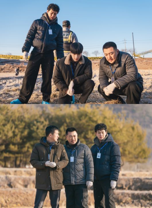 특히 용천서 신임 강력팀장 정정현(강훈)의 굳은 표정이 시선을 사로잡는다. 전창진(류승수), 장혁근(최광제), 박석우(빈찬욱) 등 팀원들과 함께 사체를 살피는 그의 날카로운 눈빛과 깊은 고뇌에 빠진 듯한 표정에서는 거대하고 끔찍한 사건과 마주하게 된 신임 팀장의 복잡한 심경이 고스란히 느껴진다.