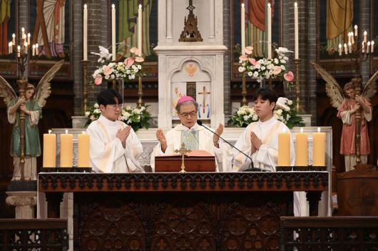 한국천주교주교회의는 이날 "한국천주교 주교단과 주한교황대사 조반니 가스파리 대주교는 레오 14세 교황 선출 감사 미사를 이날 서울 중구 소재 명동대성당에서 공동 집전했다"고 밝혔다.