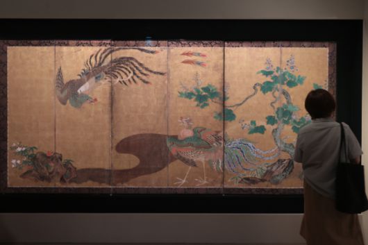 주요 전시품으로는 에도 시대인 18세기 가노 히데노부의 ‘봉황공작도병풍’, 16~17세기 다도 도구인 ‘시바노이오리 물항아리’, 에도 시대 장식 화풍의 거장 오가타 고린이 그린 ‘가을풀무늬 고소데(기모노)’, 전통 공연 예술인 노(能)에 사용된 ‘노 가면 샤쿠미’ 등이 포함됐다.