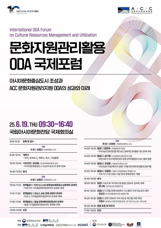김상욱 전당장은 "이번 포럼은 ACC 개관 10주년과 문화자원관리 ODA 사업 10년을 맞이해 성과를 돌아보고 미래 방향을 진지하게 고민하는 자리"라며 "ACC 문화정보 통합 아카이브 서비스의 확장성과 지속 가능한 ODA 모델에 대해 심도 있는 논의가 이뤄질 것"이라고 말했다.